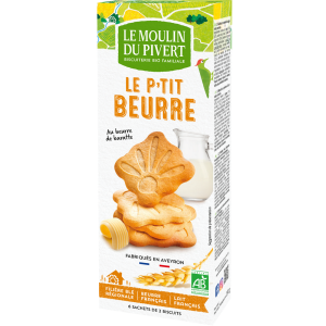 SKŁADNIKI mąka PSZENNA*, cukier trzcinowy nierafinowany**, MASŁO* (15,6 %), skrobia PSZENNA*, miód*, kokos*, odtłuszczone MLEKO w proszku*, sól morska, substancje spulchniające (węglany amonu, węglany sodu). (*składnik ekologiczny, **składnik z certyfikatem Fair trade). OPISPetit Beurre to kwintesencja francuskich ciastek: chrupiące, maślane i pieczołowicie wykonane z francuskiej PSZENICY i brązowego cukru trzcinowego Fair trade. Organiczne, bez oleju palmowego…