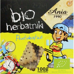 SKŁADNIKImąka z PSZENICY samopszy* (31,8 %), mąka PSZENNA*, MASŁO ghee* (7,69 %), cukier*, MLEKO pełne w proszku*, ekstrakt ze słodu JĘCZMIENNEGO*, sól himalajska, wanilia*, substancje spulchniające: wodorowęglan sodu, wodorowęglan amonu, enzymy. (*certyfikowany składnik ekologiczny) OPIS Te herbatniki mają bardzo przyjemny lekki maślany aromat. Wykonane z mąki samopszy i krowiego ghee, są bogate w błonnik i…