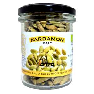 SKŁADNIKI ekologiczny kardamon mielony. OPISKardamon mielony należy do grupy przypraw korzennych o egzotycznym pochodzeniu. Odznacza się przyjemnym cytrynowo-imbirowym aromatem oraz nutą korzennego, lekko gorzkawego smaku. Kardamon mielony doskonale łączy się z innymi przyprawami i uzupełnia gamę egzotycznych, głębokich smaków i aromatów takich jak: cynamon, goździki i wanilia. Doskonały do potraw słodkich, deserów, owoców, jak i…