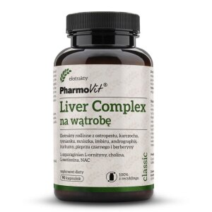 SKŁADNIKICholina (dwuwinian choliny); kapsułka celulozowa: hydroksypropylometyloceluloza; ekstrakt z nasion ostropestu plamistego standaryzowany na 80 % sylimaryny i 30 % sylibiny; ekstrakt z ziela tymianku pospolitego; ekstrakt z korzenia mniszka lekarskiego; ekstrakt z liści karczocha zwyczajnego; ekstrakt z kłączy imbiru lekarskiego standaryzowany na 5 % gingeroli; ekstrakt z liści andrographis standaryzowany na 20 % andrografolidów; L-asparaginian…