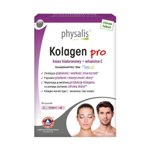 SKŁADNIKI hydrolizowany kolagen RYBI (87,8 %), witamina C (kwas L-askorbinowy), kwas hialuronowy (hialuronian sodu), regulator kwasowości: kwas cytrynowy. Składniki aktywne w porcji dziennej – 2 saszetkiKolagen (Naticol®) – 5000 mgKwas hialuronowy (ExceptionHYAL® Star) – 200 mgWitamina C – 250 mg (313 %)**dzienna referencyjna wartość spożycia OPIS Suplement diety zawierający składniki odżywcze. Physalis Collagen Pro to…