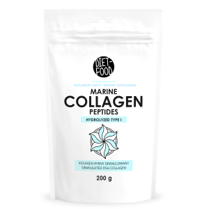 SKŁADNIKI Hydrolizowany kolagen morski ze skóry dzikiego dorsza atlantyckiego (Gadus morhua)(RYBY), witamina C (kwas L-askorbinowy). Składniki w porcji dziennej – 2 łyżeczkiHydrolizowany kolagen morski ze skóry dzikiego dorsza atlantyckiego – 5000 mgwitamina C – 80 mg (100 %)** ** dzienna referencyjna wartość spożycia witaminy C (dla osoby dorosłej) OPIS Suplement diety. 20 dni suplementacji. Kolagen…