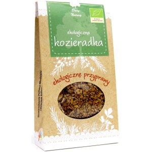 SKŁADNIKIkozieradka mielona* 100 %. (* certyfikowany składnik ekologiczny) OPISKozieradkę stosuje się jako przyprawę do cielęciny, baraniny, drobiu i ryby.Podnosi walory smakowe w mieszankach przyprawowych. ZALECANE WARUNKI PRZECHOWYWANIA Przechowywać w suchym miejscu