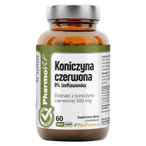 SKŁADNIKI Ekstrakt z nadziemnych części koniczyny czerwonej standaryzowany na 8 % izoflawonów, kapsułka celulozowa: hydroksypropylometyloceluloza, BioPerine® – ekstrakt z owoców pieprzu czarnego standaryzowany na 95 % piperyny. BioPerine® jest zastrzeżonym znakiem towarowym firmy SABINSA Składniki w porcji dziennej – 1 kapsułkaekstrakt z nadziemnych części koniczyny czerwonej (Trifolium pratense) – 500 mgw tym izoflawony – 40…