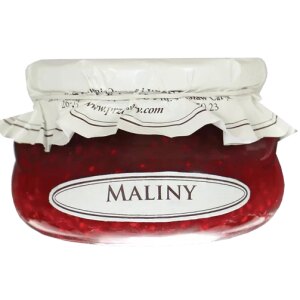 SKŁADNIKImaliny, cukier, syrop glukozowy (4 %) – zapobiega scukrzeniu. OPISSporządzono z 54 g owoców na 100 g produktu.Owoce malin są bardzo delikatne, dlatego w słoiku z konfiturą malinową odnajdziecie Państwo fragmenty owoców, które z syropem tworzą jednorodną całość. Duża zawartość cukru pozwala wydobyć wyrazisty, malinowy kolor i naturalny aromat owoców. Cukier nadaje konfiturze piękną szklistą…