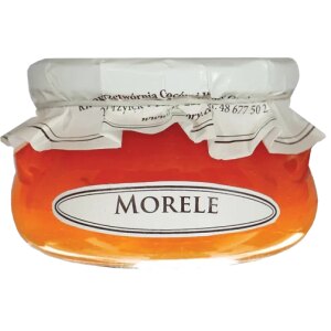 SKŁADNIKImorele, cukier, syrop glukozowy (3,5 %) – zapobiega scukrzeniu. OPISSporządzono z 50 g owoców na 100 g produktu.Owoce moreli są dosyć duże, więc kroimy je na mniejsze części, aby konfitura była bardziej smarowna. Cukier nadaje konfiturze piękną szklistą barwę i pozwala zachować słoneczny kolor owoców, a także zapobiega psuciu się zawartości słoika. Dzięki temu otwarta…