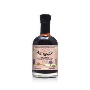 SKŁADNIKIsok z daktyli Maiores*, moszcz winogronowy*, ocet winogronowy*. (*certyfikowany składnik ekologiczny). OPISPowstał z przyjaźni dwóch oddanych rzemieślników, jeden uprawia daktyle Maiores pod algierskim słońcem, drugi wytwarza ocet w Grecji. Razem, ich pasja tworzy symfonię smaku i harmonii. Podczas nalewania, po prostu spójrz na to – tak gęste, że zdecydowanie jest kremem! Dzięki głębokiemu mahoniowemu kolorowi…