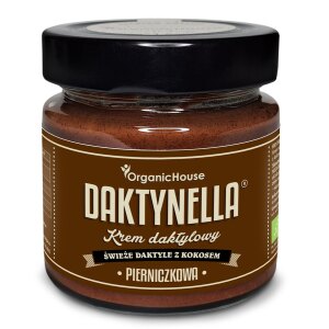 SKŁADNIKIekstrakt z kokosa* 57 % ,świeże daktyle Medjool* 37 %, kakao o obniżonej zawartości tłuszczu*, nierafinowany olej kokosowy z miąższu kokosa tłoczony na zimno* (*certyfikowany składnik ekologiczny) OPISDaktynella OrganicHouse to niskokaloryczny krem na bazie świeżych ekologicznych daktyli medjool, kokosa i kakao – prawdziwa czysta etykieta. Kluczem doskonałego smaku są najwyższej jakości składniki. Daktynella świetnie smakuje…prosto ze słoika, a także z…