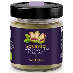 SKŁADNIKIPISTACJE (40 %), tłuszcze roślinne (olej słonecznikowy, kakaowy), substancja słodząca: izomalt, odtłuszczone MLEKO w proszku, emulgator: lecytyny (ze słonecznika). OPISKrem do smarowania pistacjowy. Bez dodatku cukrów. Zawiera substancję słodzącą, zawiera naturalnie występujące cukry. Idealnie sprawdzi się jako dodatek do pieczywa, ciastek, naleśników czy też deserów. WARTOŚĆ ODŻYWCZA w 100 gWartość energetyczna: 2240 kJ/542 kcalTłuszcz: 48…
