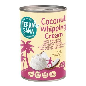 SKŁADNIKIekstrakt z miąższu kokosa* (91 %), woda, skrobia z tapioki*. (* certyfikowany składnik ekologiczny) OPISIdealnie sprawdzi się jako polewa do ciast, naleśników lub deserów. SPOSÓB PRZYGOTOWANIAWstaw puszkę do lodówki na co najmniej 8 godzin, przelej do miski i ubij. WARTOŚĆ ODŻYWCZA W 100 gWartość energetyczna: 1249 kJ/303 kcal Tłuszcz: 30 g w tym kwasy tłuszczowe…