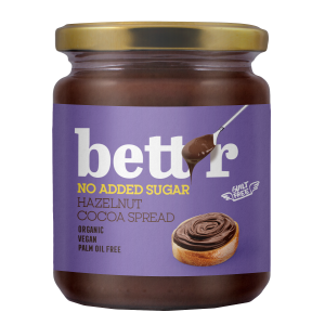 SKŁADNIKIcukier trzcinowy*, olej słonecznikowy*, pasta z ORZECHÓW LASKOWYCH* (13 %), kakao w proszku o obniżonej zawartości tłuszczu* (8,5 %,) napój ryżowy w proszku*, tłuszcz kakaowy* (0,5 %), emulgator: lecytyny (ze słonecznika*) (*certyfikowany składnik ekologiczny) OPISKrem orzechowo – czekoladowy. Źródło błonnika pokarmowego. Odpowedni dla wegan. Bezglutenowy. WARTOŚĆ ODŻYWCZA W 100 gWartość energetyczna: 2174 kJ/523 kcalTłuszcz: 29…