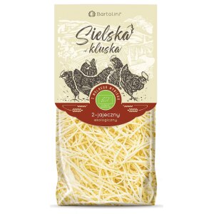 SKŁADNIKImąka z PSZENICY ORKISZ jasna* (typ 500), JAJA* (13 %). (*certyfikowany składnik ekologiczny) SPOSÓB PRZYGOTOWANIAPrzed spożyciem gotować we wrzącej wodzie (średni ogień), przez 4-5 minut, nie hartować (100 g makaronu na 1 litr wody, posolić wg uznania). Ugotowany makaron odcedzić. WARTOŚĆ ODŻYWCZA w 100 g Wartość energetyczna: 1581 kJ / 373 kcalTłuszcz: 2,7 gw tym kwasy…