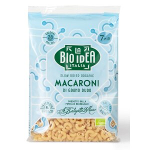 SKŁADNIKImakaron semolinowy półrazowy* [50 % semolina* (mąka z PSZENICY durum*) pełnoziarnista, 50 % semolina* (mąka z PSZENICY durum*)], woda. (*certyfikowany składnik ekologiczny) OPISLumaconi, czyli „duże ślimaki”, to imponujący format makaronu z Włoch. Jego charakterystyczny kształt przypominający skorupę ślimaka został stworzony, by stać się gwiazdą stołu, a nie tylko dodatkiem do dania. Dzięki swojej obszernej, wklęsłej…