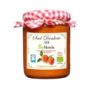 SKŁADNIKImorele*, koncentrat jabłkowy*, substancja zagęszczająca: pektyny, przeciwutleniacz: kwas askorbinowy. (*certyfikowany składnik ekologiczny) OPISMus marki Sad Danków odznacza się wysoką zawartością owoców (80%) oraz brakiem konserwantów. Polecamy wszystkim, którzy pragną uniknąć zbędnego dodatku cukru białego oraz cenią naturalny i wyrazisty smak.Produkt otrzymany przez gotowanie owoców moreli z dodatkiem koncentratu jabłkowego w celu otrzymania odpowiedniego poziomu pH….