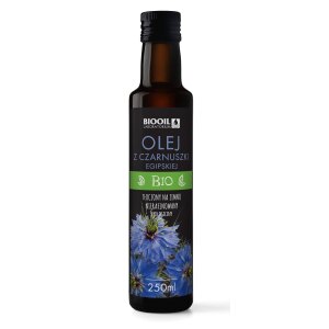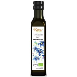 SKŁADNIKI olej z nasion czarnuszki 100 %. SPOSÓB UŻYCIAStosować wyłącznie na zimno. Spożywać bezpośrednio lub jako dodatek do pieczywa, kasz, makaronów, surówek, sałatek, mięs, ryb. WARTOŚĆ ODŻYWCZA W 100 gWartość energetyczna: 3415 kJ/831 kcal Tłuszcz: 92 g w tym kwasy tłuszczowe nasycone: 15 gw tym kwasy tłuszczowe jednonienasycone: 20 gw tym kwasy tłuszczowe wielonienasycone: 58…
