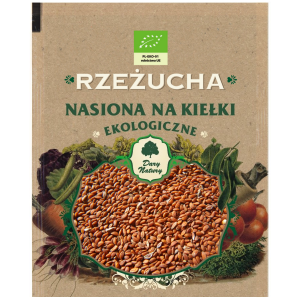 SKŁADNIKI nasiona rzodkiewki* (*certyfikowany składnik ekologiczny) OPISEkologiczne nasiona na kiełki rzodkiewki mają ostry, wyrazisty smak. SPOSÓB PRZYGOTOWANIA W warunkach domowych kiełki przygotowujemy w następujący sposób. Bierzemy płaski talerz, wykładamy go gazą lub innym materiałem chłonącym wodę. Na gazę sypiemy pojedynczą warstwę nasion i podlewamy ją wodą, najlepiej przegotowaną i letnią. Wodę należy uzupełniać tak ,…