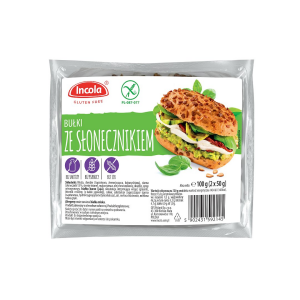 SKŁADNIKI woda, skrobie (tapiokowa, ziemniaczana, kukurydziana), ziarna (słonecznik 13 %, siemię lniane), mąka ryżowa, olej słonecznikowy, drożdże, syrop winogronowy, BIAŁKO KURZE (JAJA), substancja utrzymująca wilgoć (glicerol), błonnik roślinny (z babki jajowatej), cukier, substancje zagęszczające (guma ksantanowa, hydroksypropylometyloceluloza) sól, melasa trzcinowa, mielona łuska gryki. OPIS Puszyste bułki z chrupiącą posypką z ziaren słonecznika. Do wszechstronnego zastosowania…
